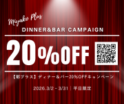 【都プラス】ディナー&バー20%OFFキャンペーン