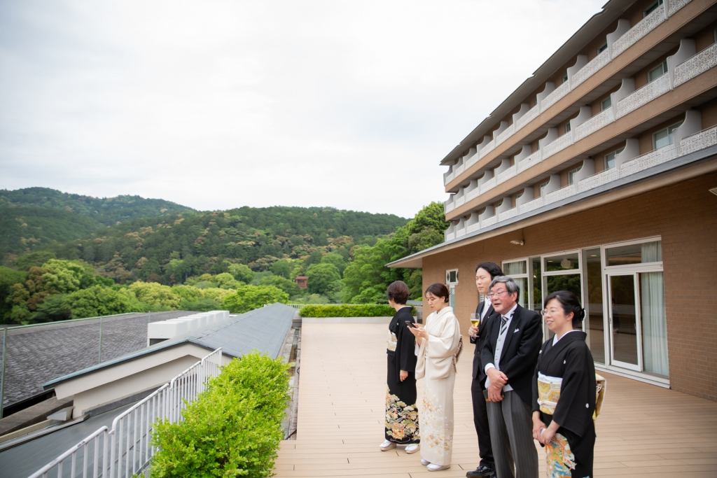 鳳凰の間のテラスでの、美しい着物姿が印象的。
