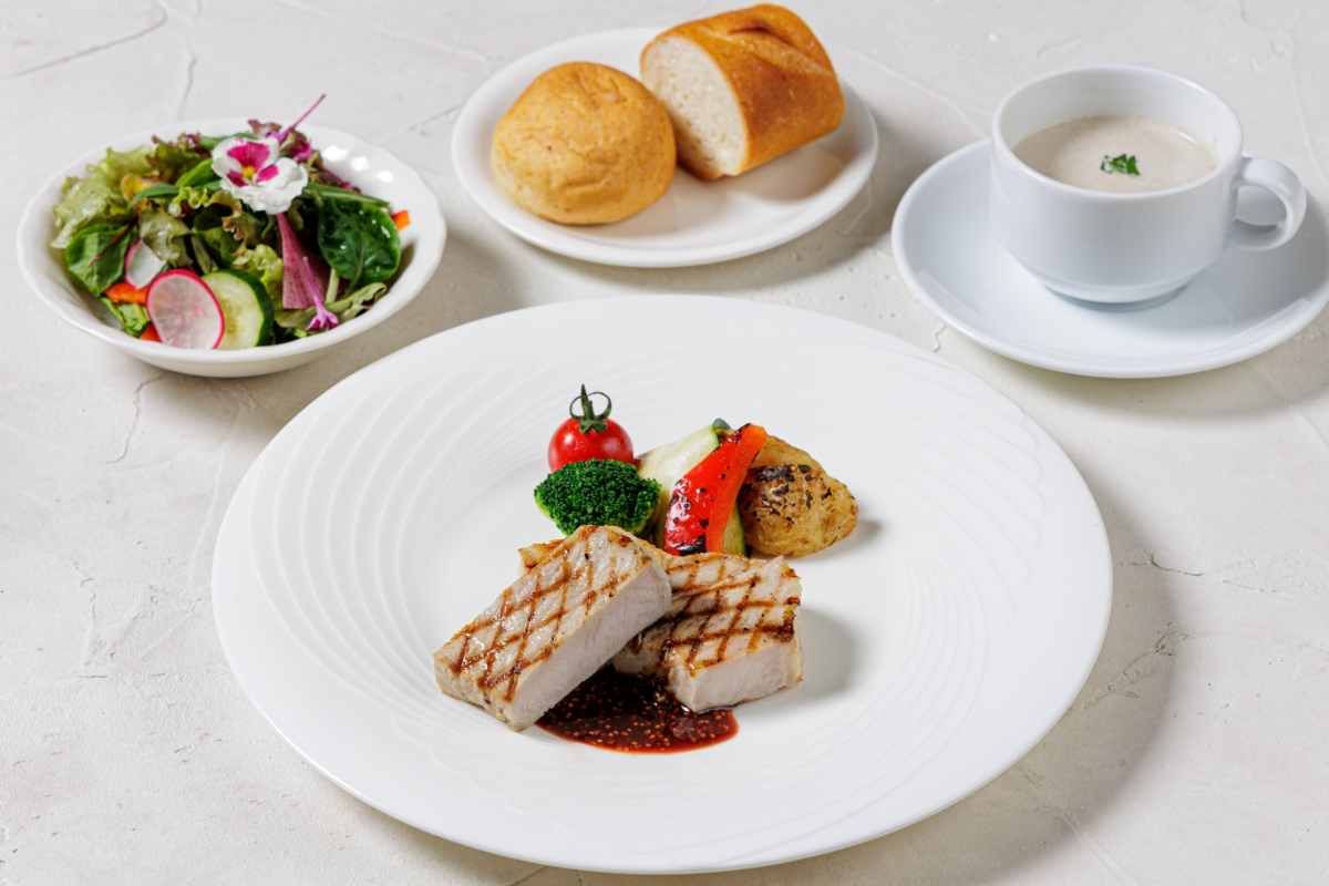 ◆豚肉のグリルマスタードソース 温野菜添え
