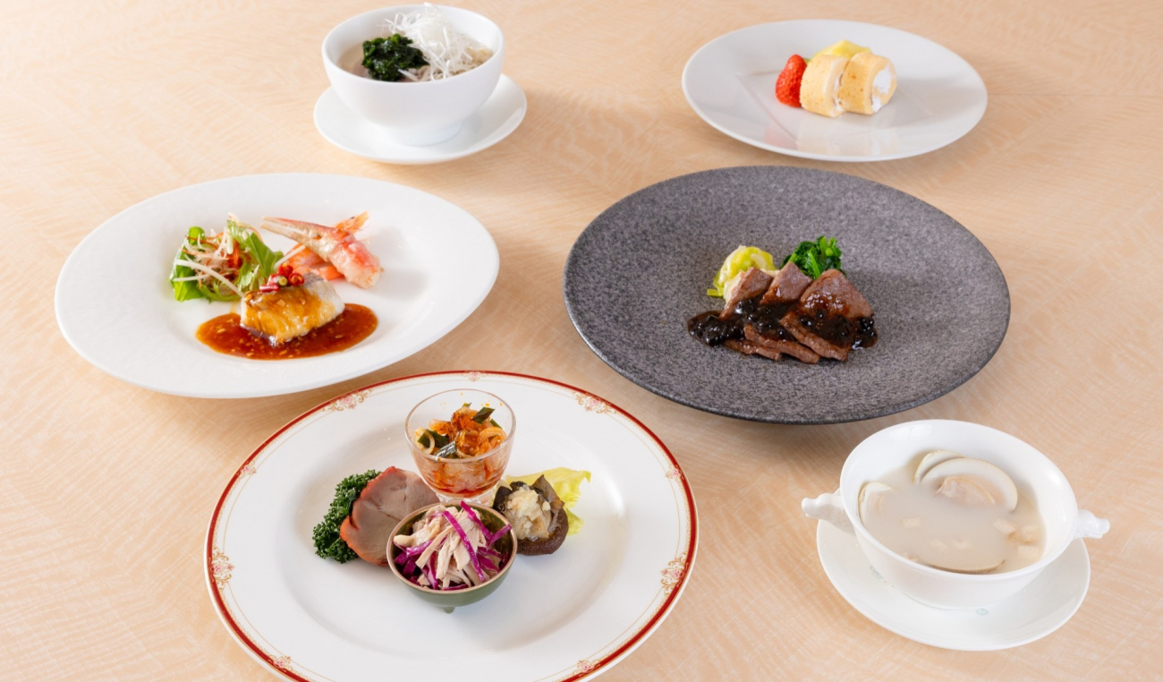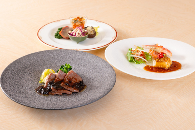 鶏パイタンで仕立てたクラムチャウダーや鯛、牛ロースを四川風に仕上げました。