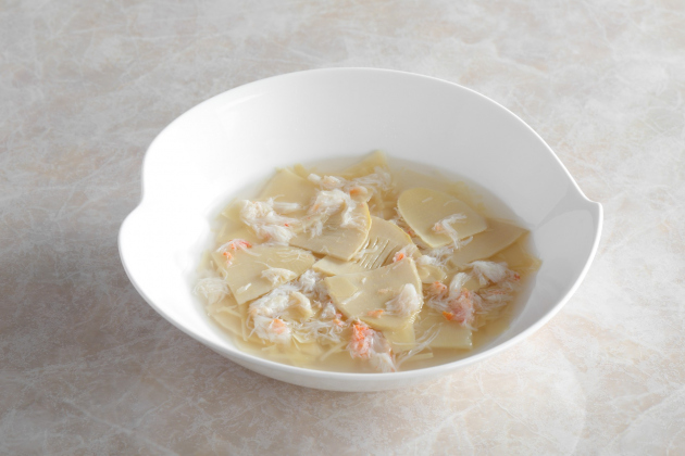 旬の筍と蟹肉を、濃厚な白湯でとろりと煮込みました