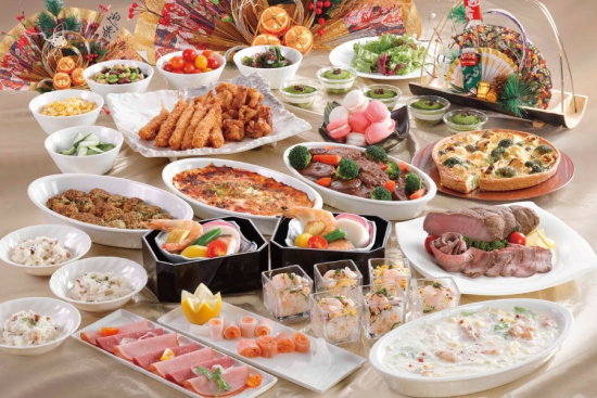 シェフが目の前で切り分ける「生ハム」、「ローストビーフ」のカービングサービスや、地元の食材にこだわった「伊勢どりのプロバンス風煮込み」「三重県産真鯛のワイン蒸し」をはじめ、「おせち4種」、「山菜そば」、「お雑煮」、「焼売」など新春の幕開けにふさわしい華やかなお料理をご用意しました